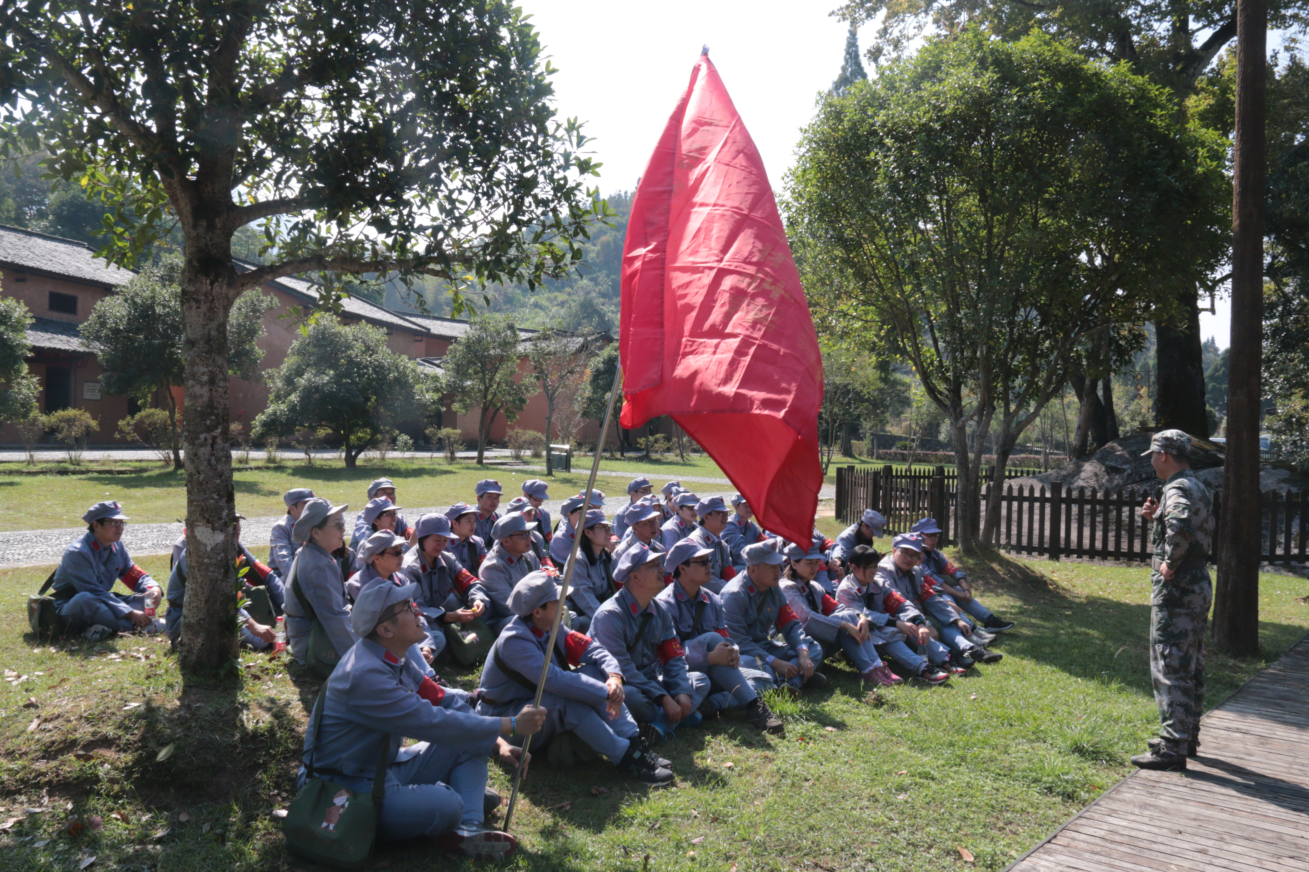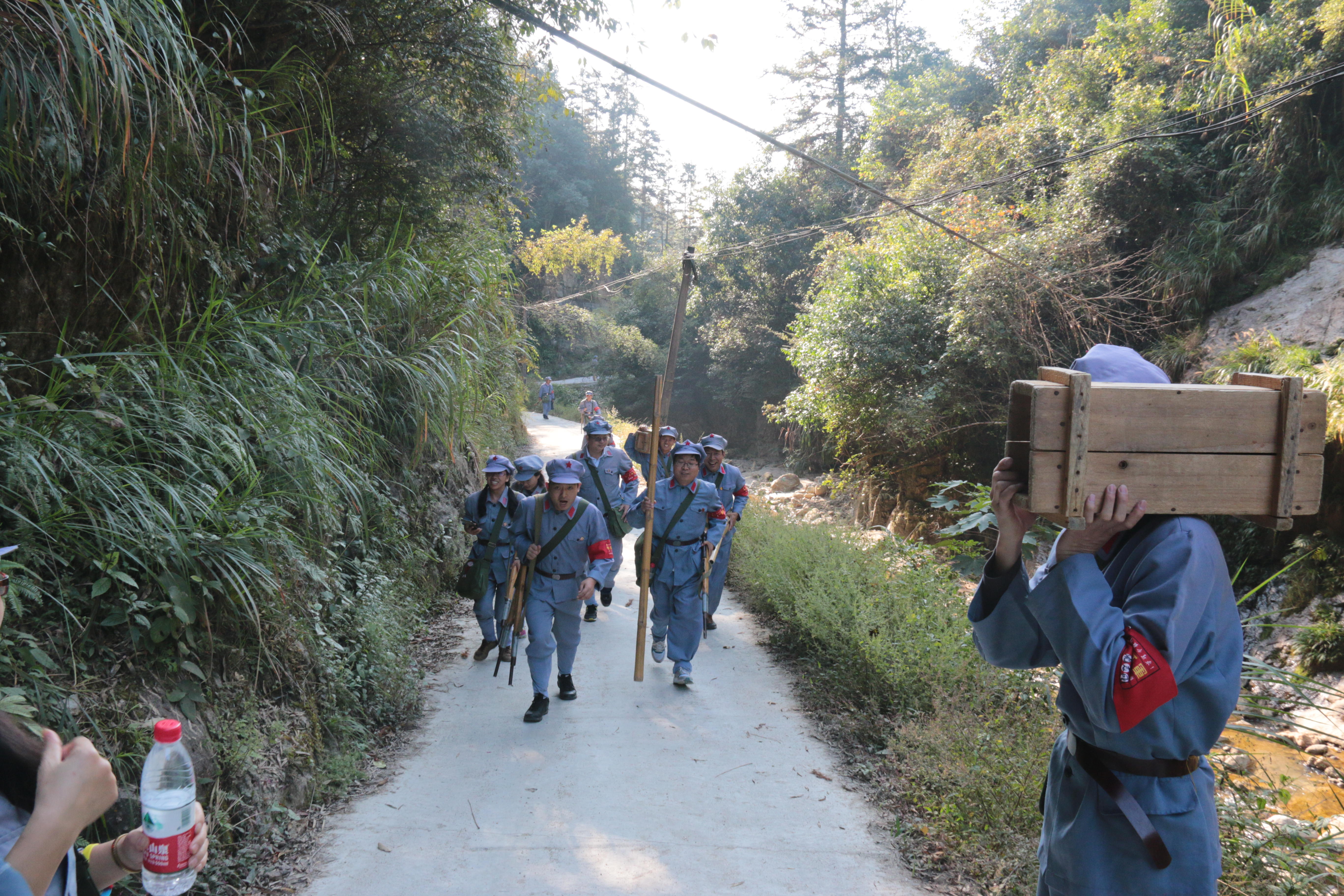 学习过程中培训班学员开展了“红军的一天”体验教学活动。首先举行的是三湾改编情景教学。三湾改编是党铸军魂的开端。授课教师系统讲解了三湾改编的历史背景、改编措施和历史意义,并将学员们分成四个班进行了情景模拟。翌日,学员们身穿红军服,背负“枪支弹药”,踏上当年红军的挑粮小道,开始了急行军。一路行军一路寻哨口,采集草药,三公里的急行军结束后学员们无不精疲力尽。午饭安排在“老表”家中,学员们以班为单位在农家生火造饭,开展了民情调查。304永利集团官网入口柳阳老师在总结时说道:“这一天我们都觉得十分辛苦,然而,我们也都知道真正的红军一天肯定比今天要辛苦百倍,革命真不是请客吃饭,幸福生活来之不易。”